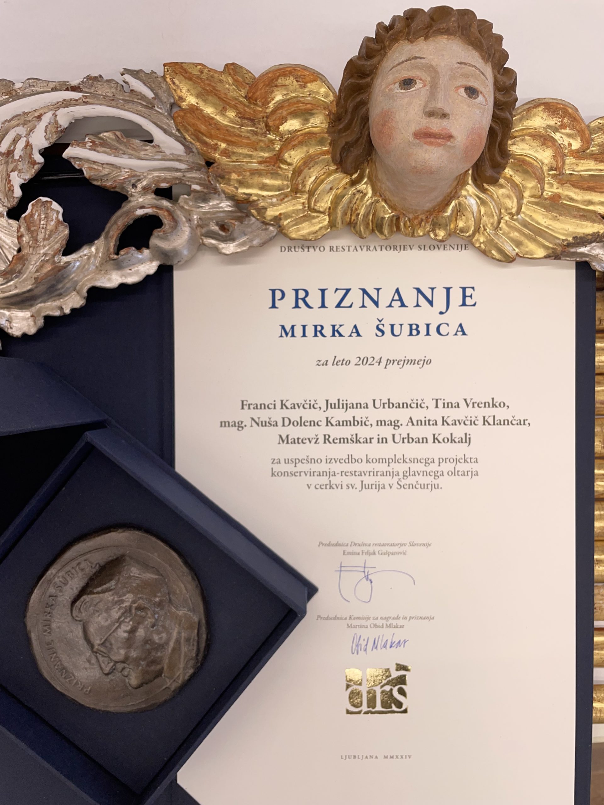 Priznanje Mirka Šubica za leto 2024 za uspešno izvedbo kompleksnega projekta konserviranja-restavriranja glavnega oltarja v cerkvi sv. Jurija v Šenčurju/ 25. 11. 2024